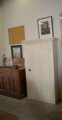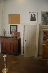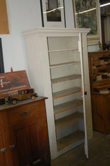 This is a very nice old wainscoted cupboard with multiple shelves inside. The outside dimensions are 37" wide by 73" tall and 123/4" deep. The shaped molding on top of the cupboard measures 411/2" wide. The simplicity of this cupboard is almost in the Shaker tradition