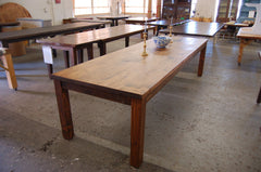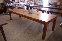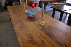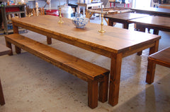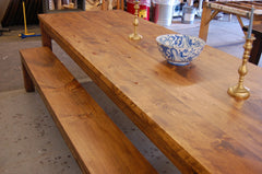 This is a great example of a Parsons style table and bench made from 2" thick old wide board planks. All our tables are custom made so contact us with your ideal dimensions. The total price is $1875.00. The table cost $1475.00 and the bench $400.00. This is a 10' table
